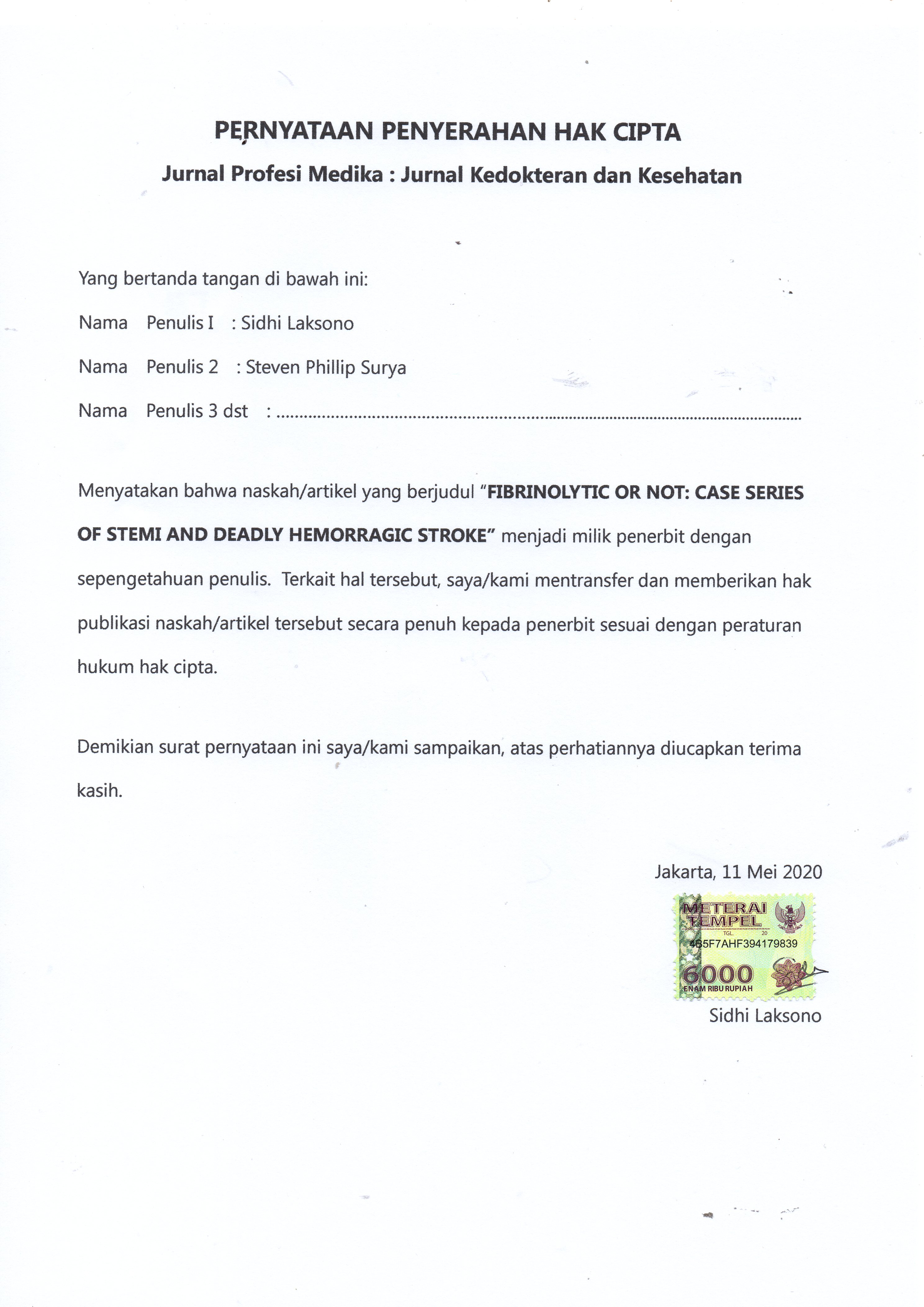 All articles submitted by the author and published in the Jurnal Profesi Medika : Jurnal Kedokteran dan Kesehatan, are fully copyrighted by the publication of Jurnal Profesi Medika : Jurnal Kedokteran dan Kesehatan under the Creative Commons Attribution-NonCommercial 4.0 International License by technically filling out the copyright transfer agreement and sending it to the publisher